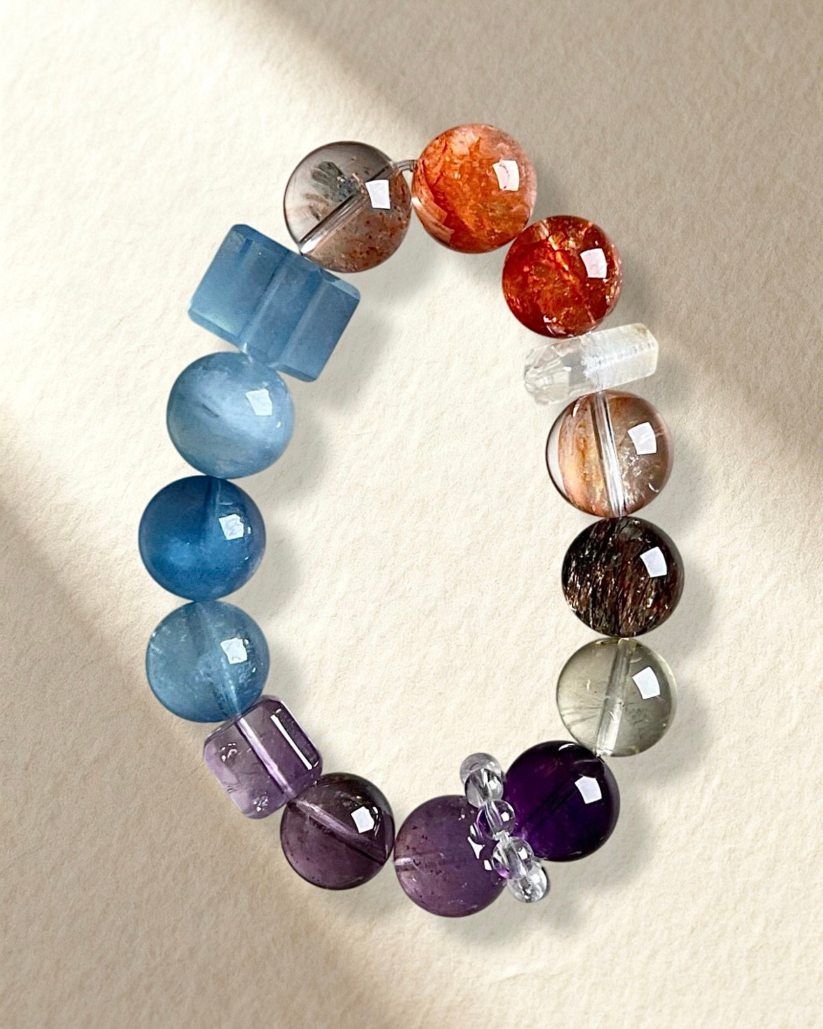 Aquamarine Amethyst Citrine Rutilated Quartz Bracelet