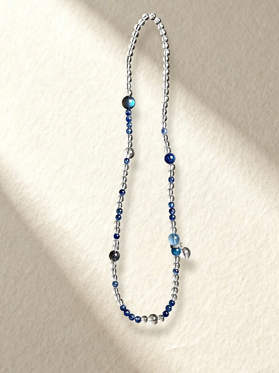 Aquamarine, Grey Moonstone, Kyanite, Clear Quartz.