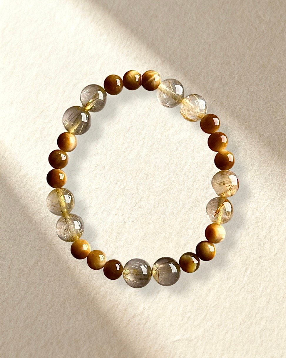 Golden Tones Crystal Bracelet Golden Rutilated Quartz Golden Tiger’s Eye Bracelet