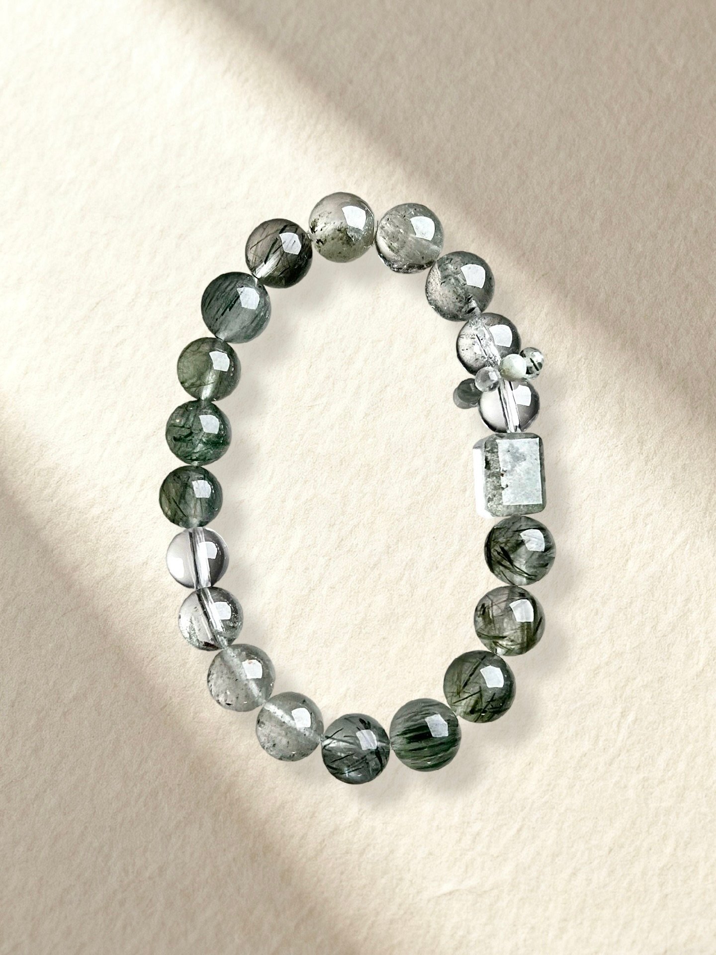 Green Phantom Quartz, Green Rutilated Quartz, Clear Quartz.