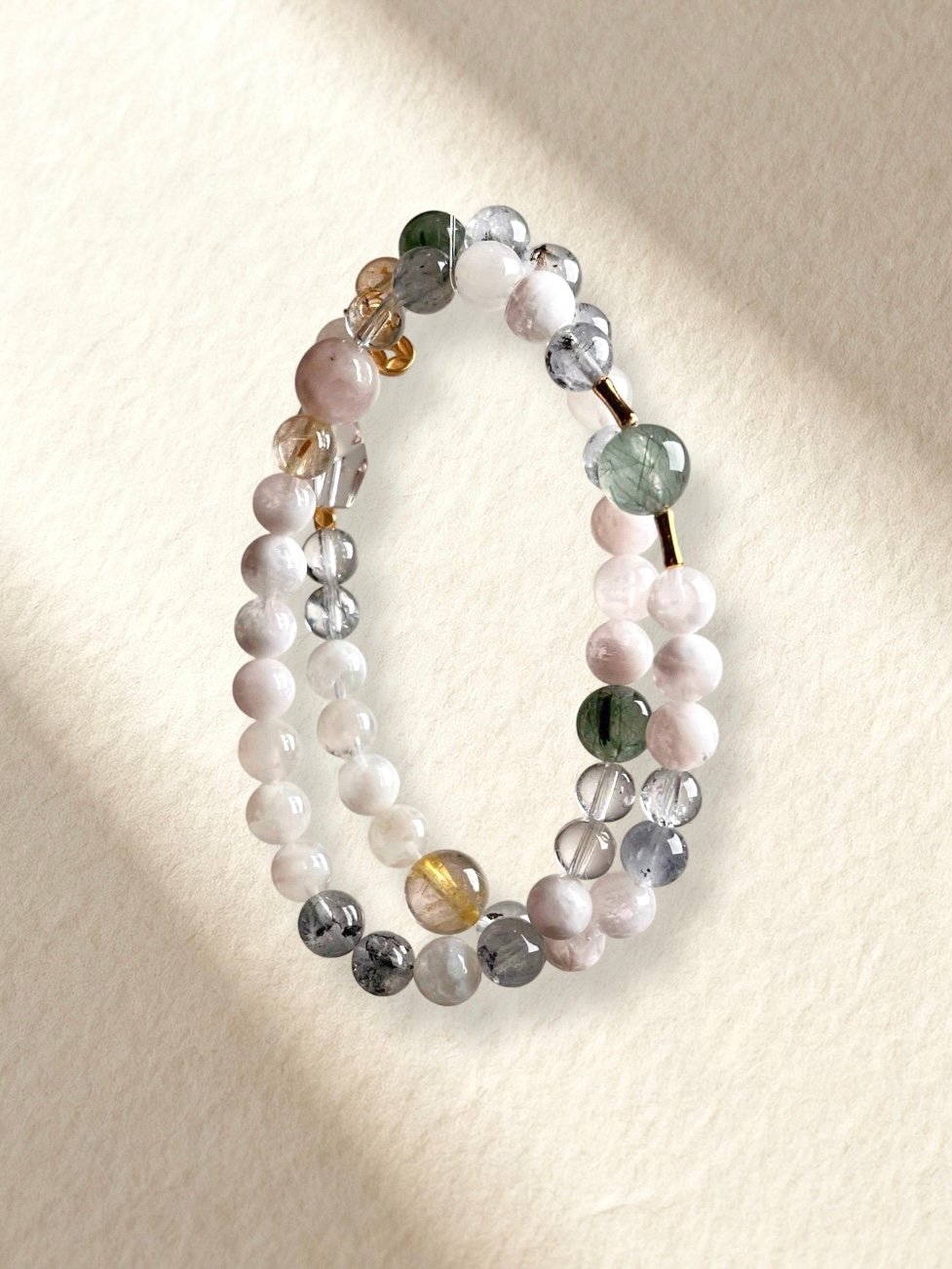 Snowflake Phantom Quartz, Green Rutilated Quartz, Black Herkimer Diamond, Red Phantom Quartz, Golden Rutilated Quartz.
