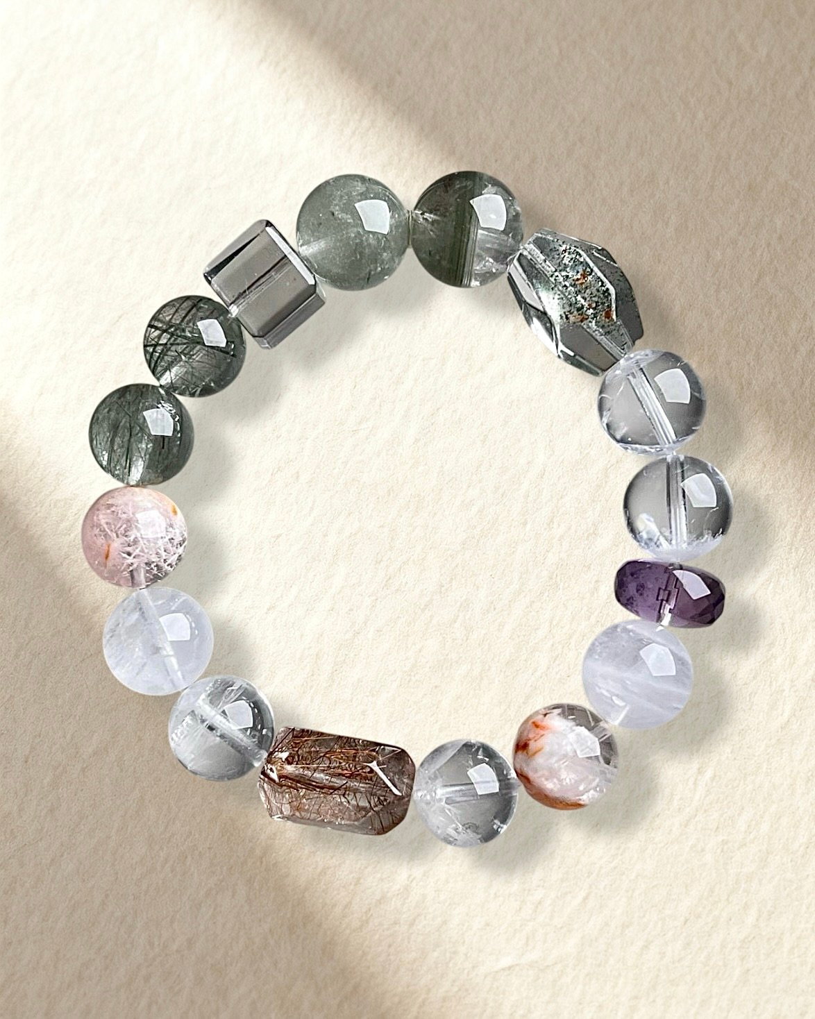 Natural Green Phantom Quartz, Green Rutilated Quartz, Orange Snowflake Phantom Quartz, White Phantom Quartz, Copper Rutilated Quartz, Brazilian Amethyst.