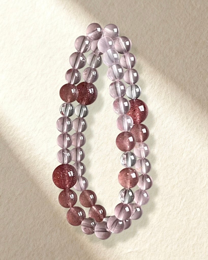 Natural Rose Quartz, Strawberry Quartz and Clear Quartz.