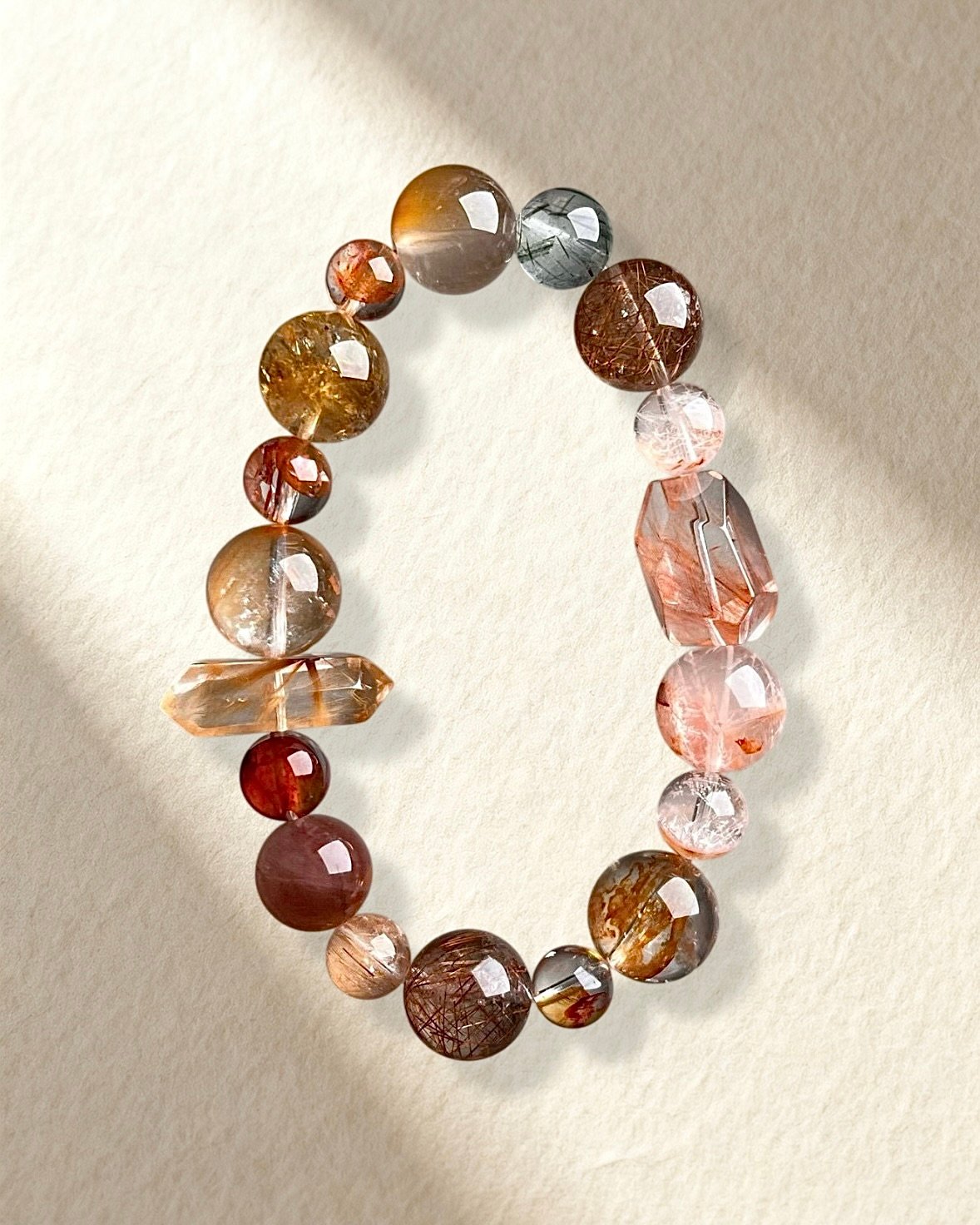 Natural Red Rutilated Quartz, Orange Snowflake Phantom Quartz, Hematoid Quartz, Copper Rutilated Quartz, Golden Topaz.