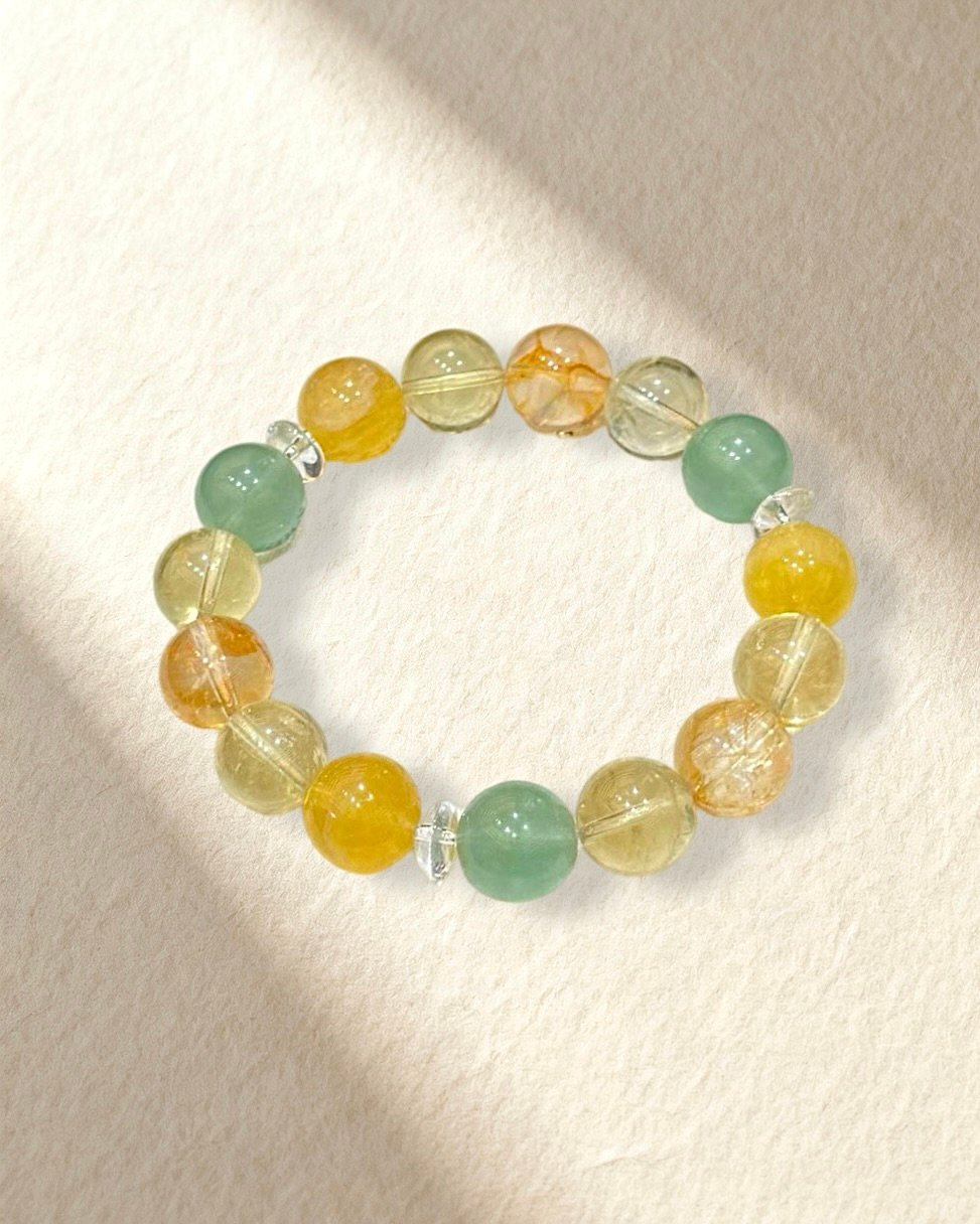 Yellow Fluorite, Yellow Hematoid Quartz, Green Fluorite, Clear Quartz, Lemon Citrine.